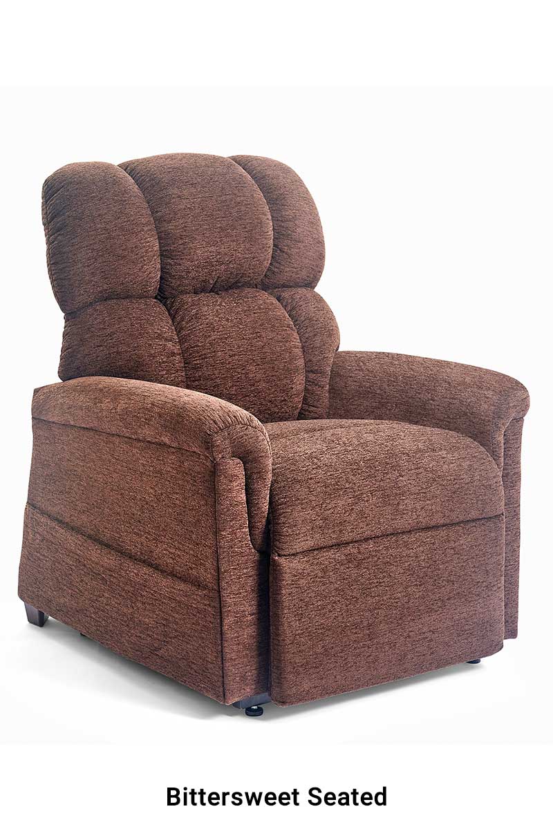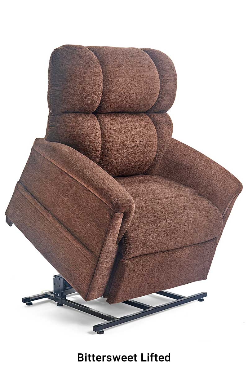 Golden Technologies recognizes that "One size does not fit all" when it comes to power lift recliners. We've expanded our classic Comforter Series with wider seating areas and greater lifting capacities. This medium wide power lift recliner has a weight capacity of 500 pounds. Most of the five lift recliners in this series use two heavy-duty motors for strength and support, with a three-position style recline mechanism.