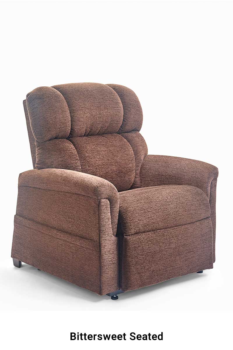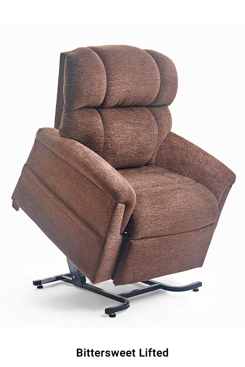 Golden Technologies recognizes that "One size does not fit all" when it comes to power lift recliners. We've expanded our classic Comforter Series power lift recliners with wider seating areas and greater lifting capacities. Most of the five lift recliners in this series use two heavy-duty motors for strength and support, with a three-position style recline mechanism. This small wide power lift recliner has a weight capacity of 375 pounds.